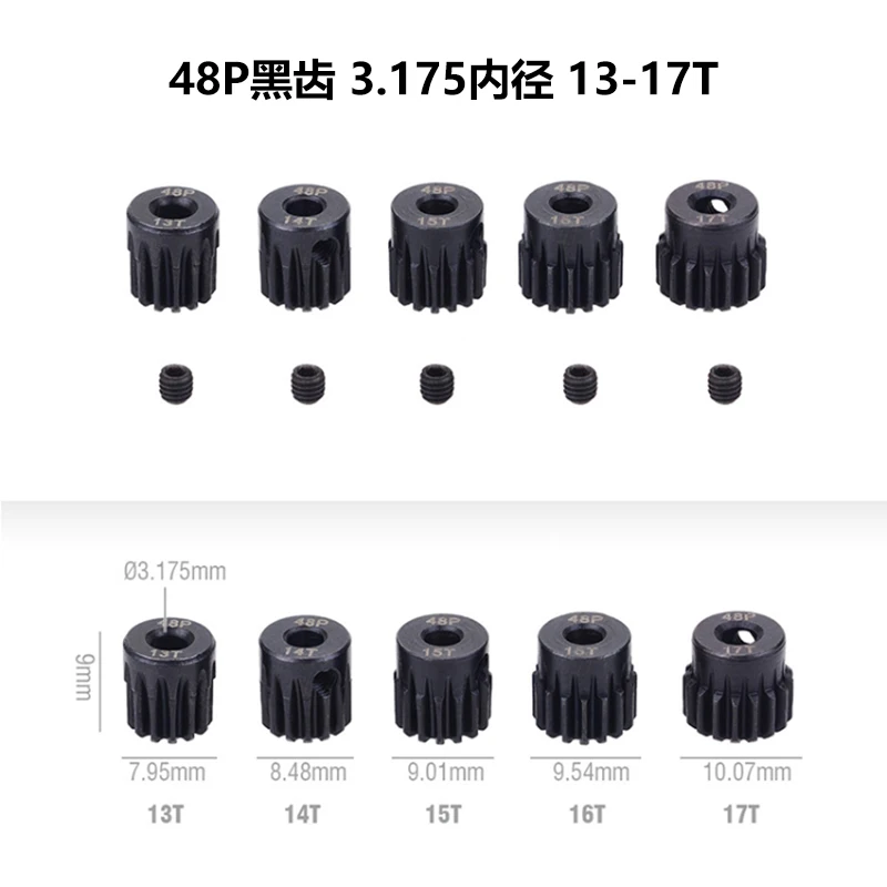 48DP 3.175mm 12T 13T 14T 15T 16T 17T 18T 19T 20T 22T 24T 25T Black Steel Metal Pinion Motor Gear 1/10 RC Model Car Motor Parts